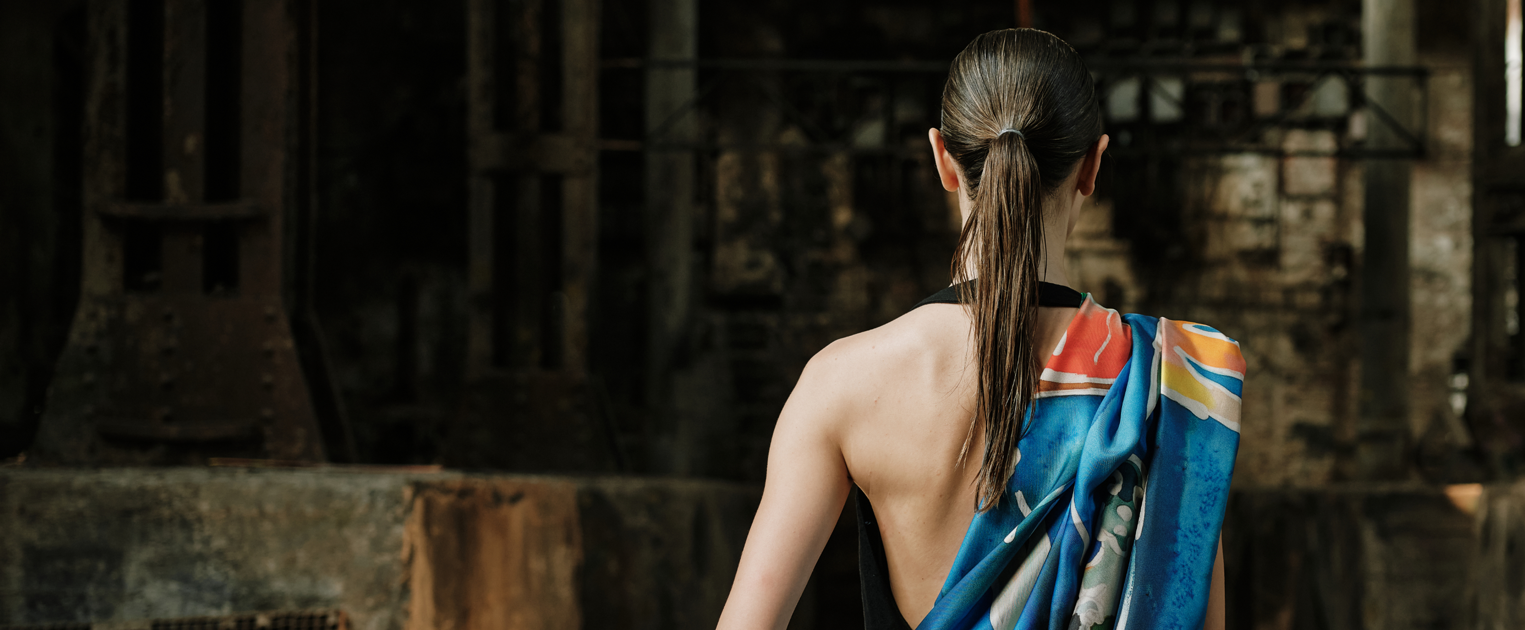 Some pieces stay with you - not because they follow fashion, but because they hold feeling. AHA scarves are created to last in both form and meaning, carrying the rhythm of a brushstroke and the intimacy of something truly handmade. Worn close to the skin, they become part of your personal archive - lived in, loved, and eventually passed on, like all things made with care.